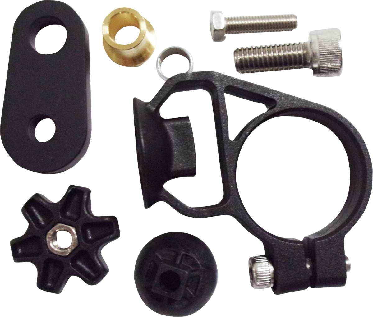 Easy adjustable screws, located on the back, lock the desired positioning securely into placeFits 7/8” to 1-1/4” handlebarsSix-way adjustableQuick release & lock function designAllows user to find best position with free adjustment and 360° rotationWorks with M8 or M10 thread size