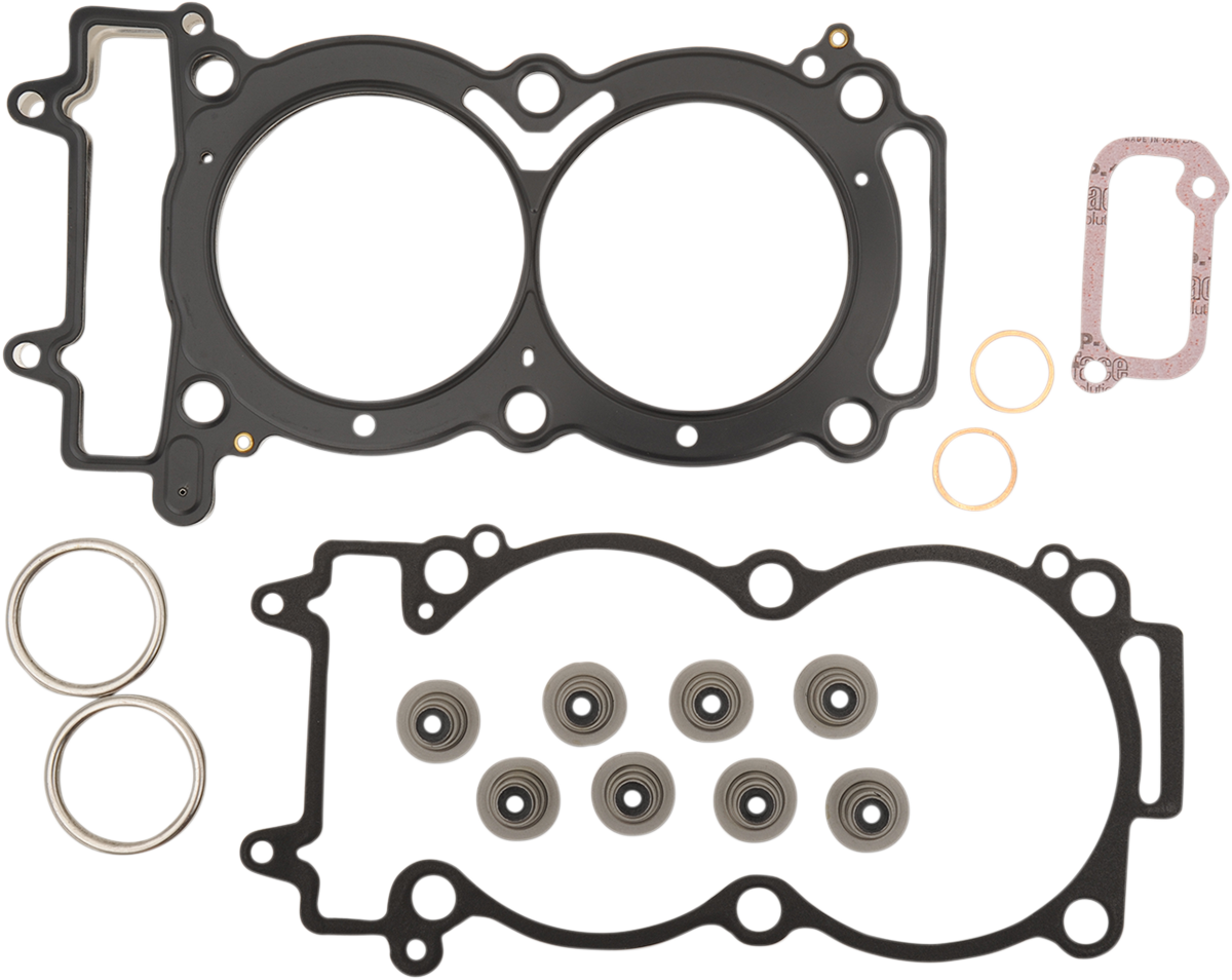Moose can now handle all your gasket and seal needs at a fraction of OEM costHigh-tech materials provide unmatched reliability and performanceRebuild the engine and transmission with total confidence as each set is designed for durability and accurate fitOil seals are genuine OEM replacement sealsPerformance sets designed for a piston replacementIncludes every gasket, O-ring and seal required to rebuild a top end; valve seals, head, base, exhaust, tensioner, and other misc. gaskets and O-ringsDoes not include formed rubber valve cover gasketHigh-compression kits use .012" thick base gaskets to raise compressionCost-effective way to raise compression without expensive high-compression pistons or cylinder head workAll gaskets made in the USASpecs
