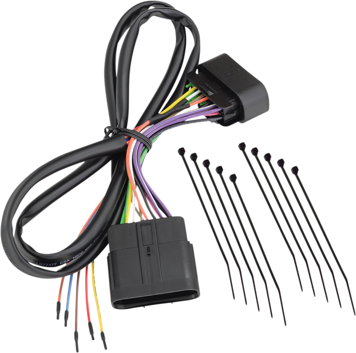 Designed with eleven terminal tie in points which are electronically protected by nine separate relays and fusesIncludes: turnsignal, running lights, brake light, always on and keyed connection pointsComes with sub harness with plug n’ go OEM connectors for seamless connectivitySpecs
