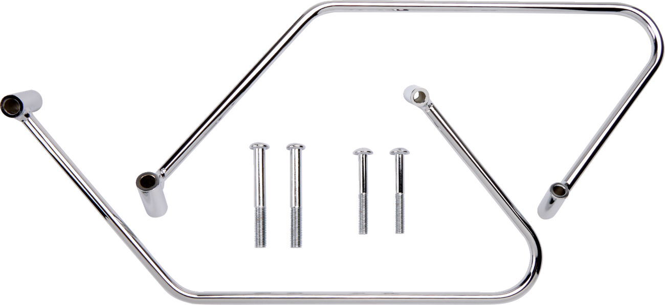 Chrome steel supports mount to rear fender bracket with new hardwareHolds saddlebags away from brake caliper, swing arms and rear tireNo drilling requiredSpecs