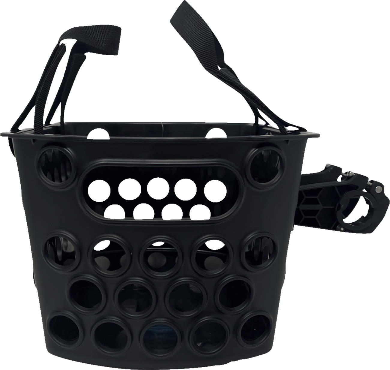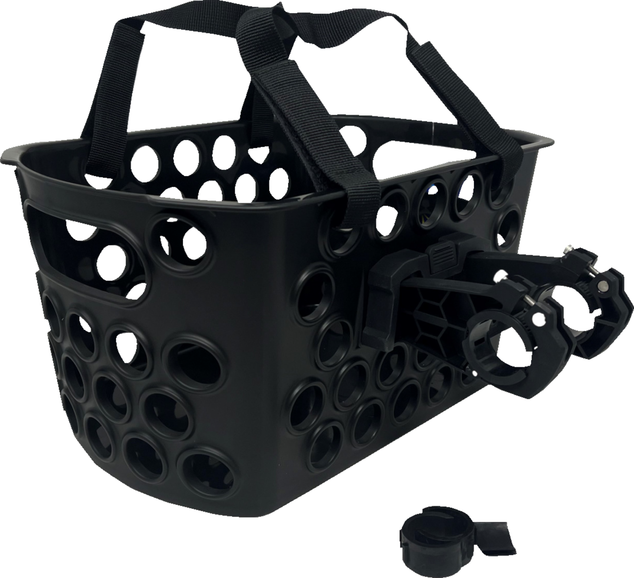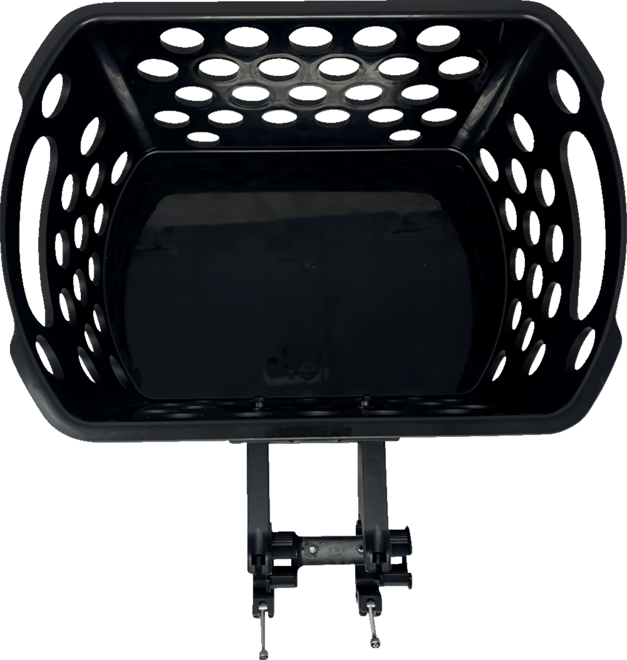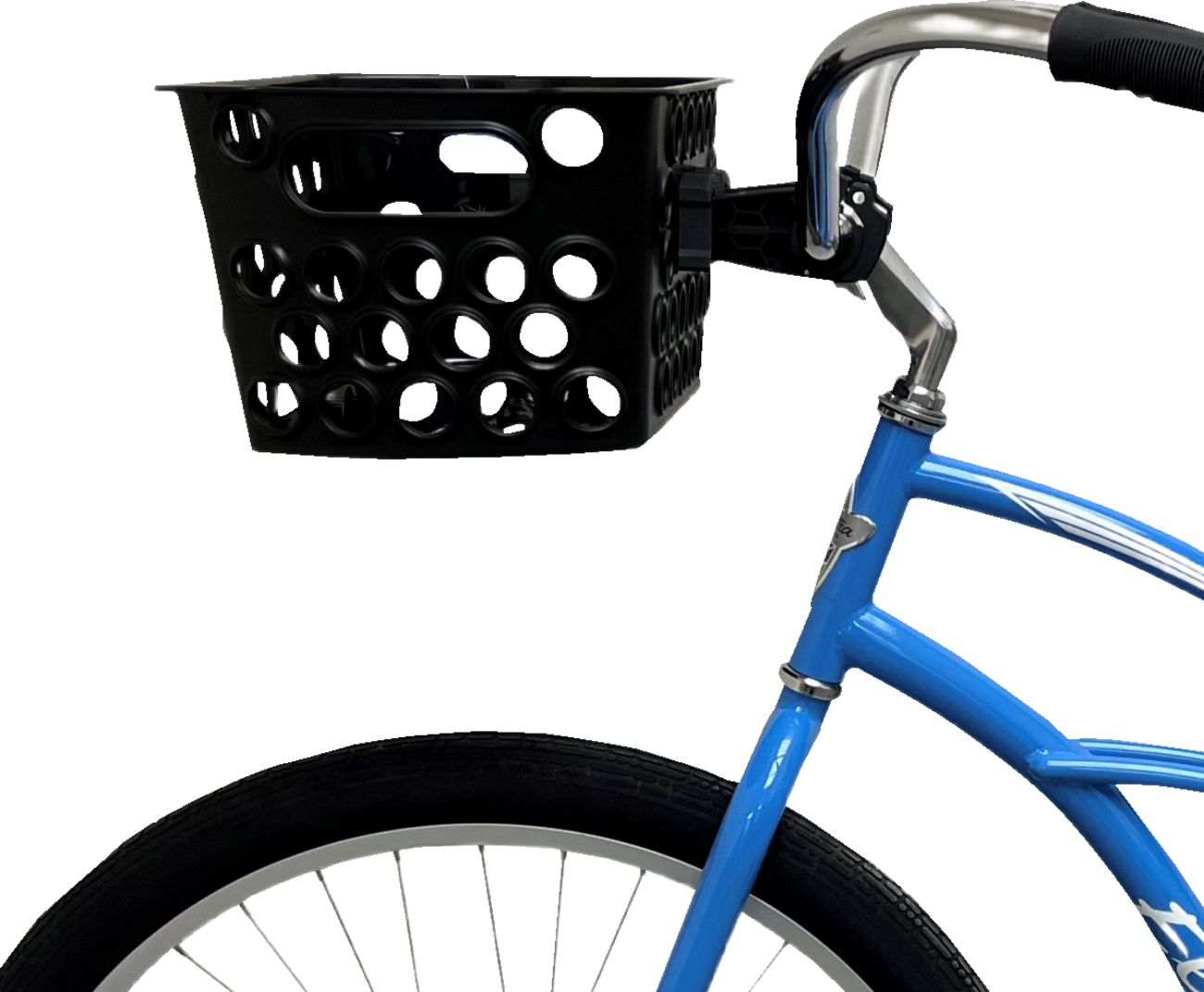 Front basket easily attaches to handlebars with a simple to use mounting systemEasily detaches from handle bar mountRemovable hook-and-loop carrying handlesMade with durable molded plastic