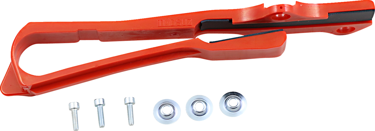 Precision made by TMD with our exclusive oil additive low friction chain materialRace tested with our rear plate tab that keeps the chain in line and reduces loose chain problemsComes with our noise dampening pads and testing has shown this to be an improvement over stockMaterial will last considerably longer than inexpensive stock slider and uses stock hardwareUV protected again color fade and agingSpecs