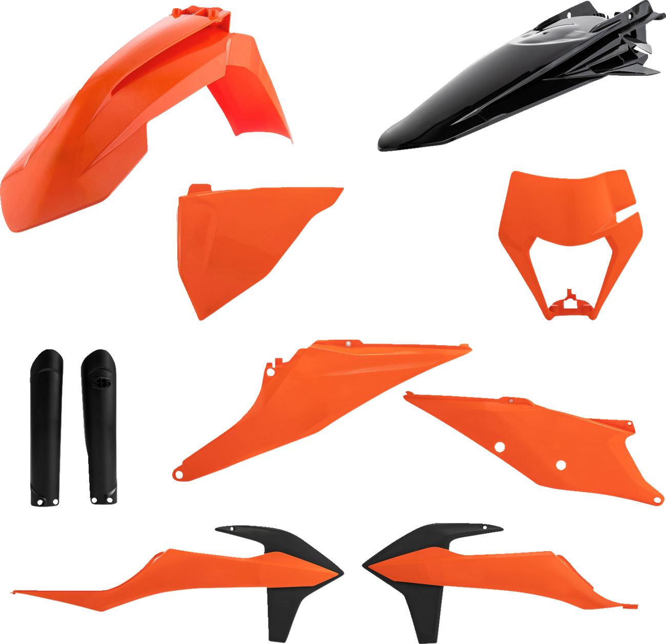 • Full kit includes front fender, front number plate, lower fork cover set, radiator shrouds, side panels, and rear fender