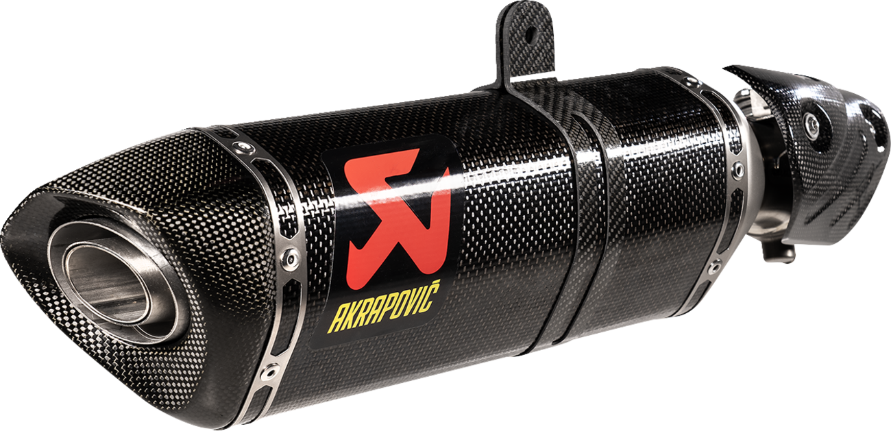Handmade carbon-fiber muffler outer sleeve, end cap, and heat shield – supplied to cover the exhaust valve in the link pipe – with a high-grade stainless-steel inner structure and link pipe
