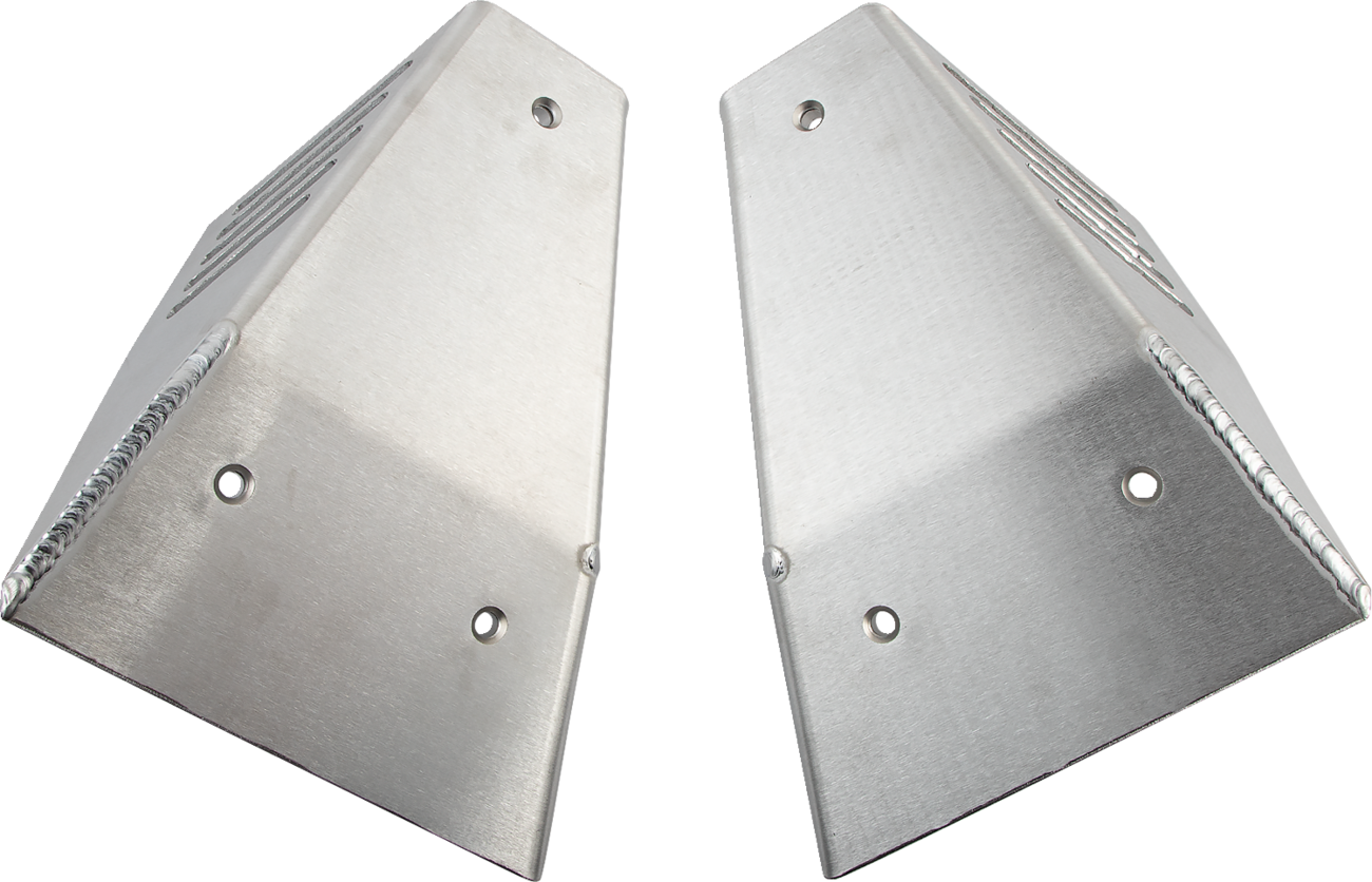 These 0.190" thick guards protect important steering and suspension componentsGuards wrap around the front A-arm to protect lower shock and mounting bracketManufactured from aircraft aluminum sheet metalSpecs