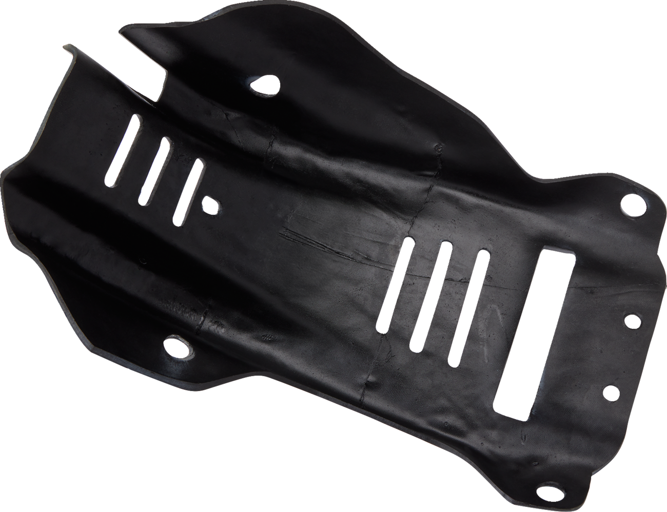 Thick composite plates with many advantages over aluminumThe use of antiballistic composite material provides a longer fatigue life and greater tensile strength than aluminumComposite plates are molded to the exact shape desired, making for a closer fit and a more protective plateComposite plates absorb vibration and do not amplify sounds like aluminum plates doWhen hit hard, aluminum permanently deforms, bending frame tubes and slicing into water pumpsComposite plates will bounce back from hard hits and look great long after aluminum plates give upSkid plates protect the side engine cases and the water pump in addition to the frame and the center caseDesigned with a high front to keep mud from building up on the engineMounting hardware includedMade in the USASpecs