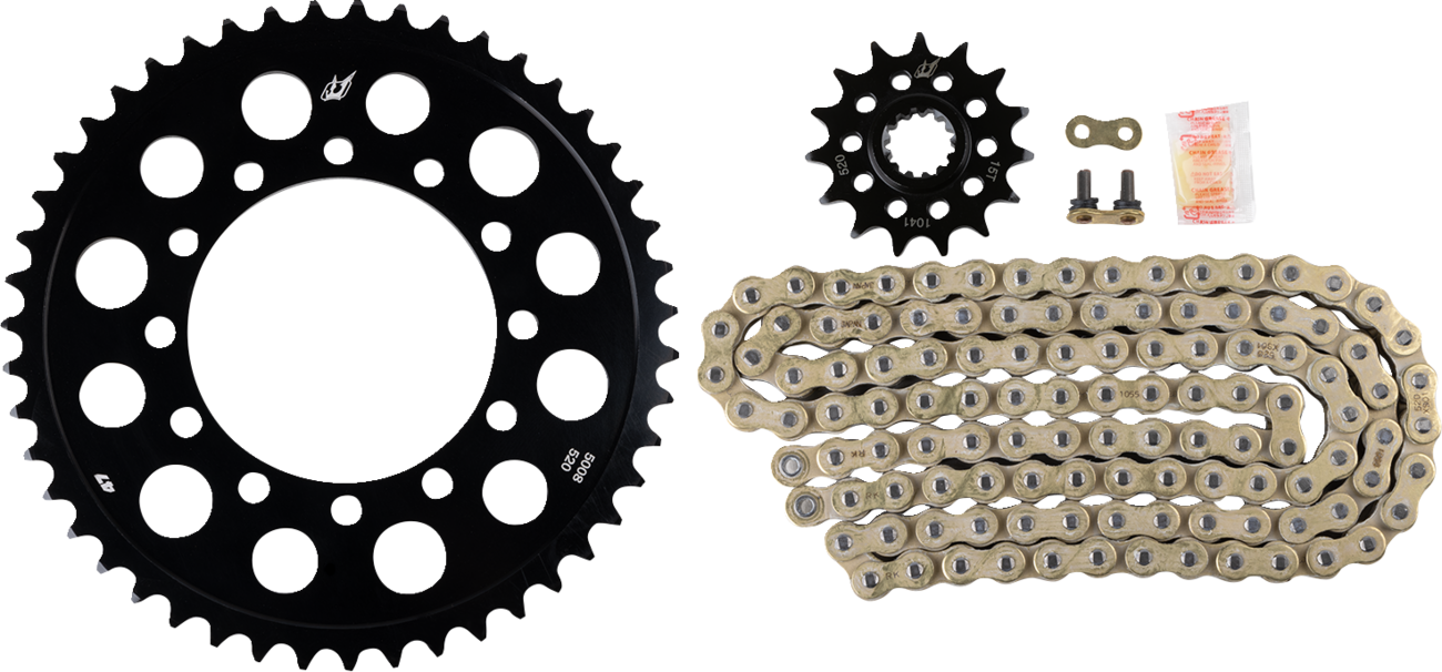 520 Aluminum Race kit features RK’s premium, lightweight RX or XW-ring sealed racing chain with a gold finish