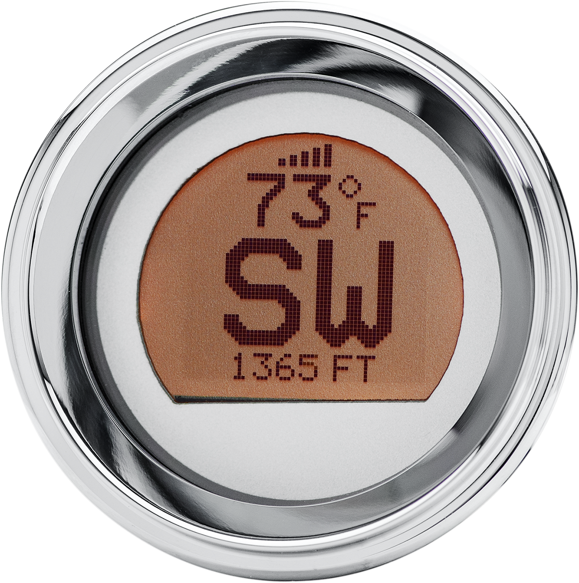 • LCD readout displays compass heading, air temperature and elevation in eight LED backlit color choices