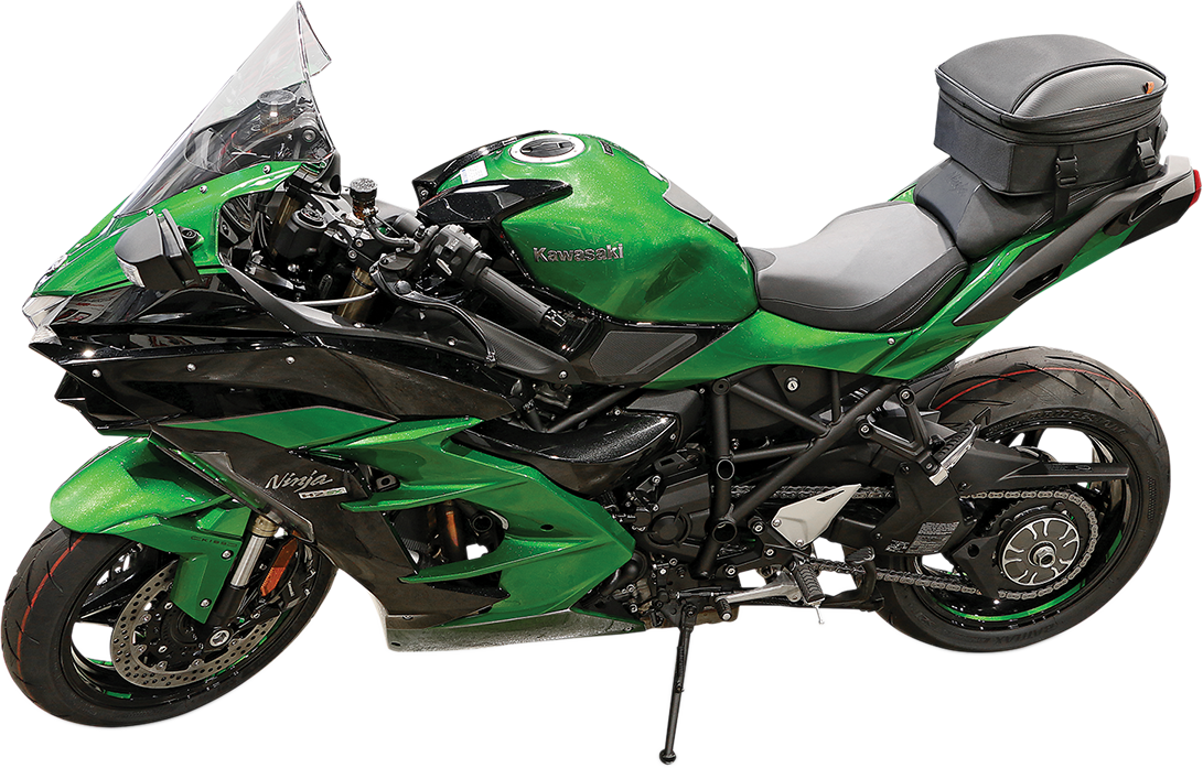 Industry leading UltraMax® fabric with maximum UV protectionEasily mounts to most tail sections and seatsMounting with four quick release bucklesMolded EVA lid with Fibertech “carbon-like” accentsBag maintains shape, has reflective piping and a lined interiorLockable reverse coil zippers and hi-density rubber zipper pullersInside self-fastening straps to better secure contentsFlush mount reflective handle and mesh organizer under lid100% waterproof rain cover and adjustable shoulder strapExpands to hold a full-face helmet