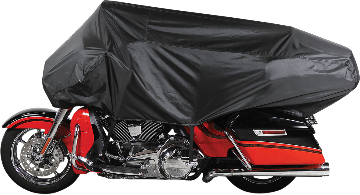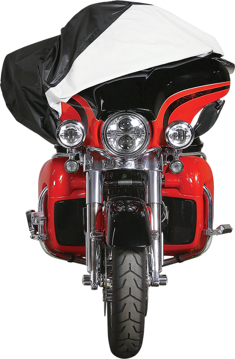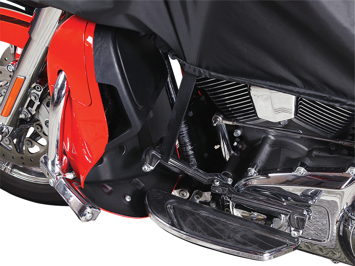 Packed in integrated carry bag small enough to fit any storage compartmentSized to fit all touring motorcycles and adventure bikes with hard bagsSnug elastic hem and sewn in elastic bungee straps for snug fit100% waterproof with electronically taped seamsInnovative UltraMax™ durable polyester materialSoft windshield liner protects against scratchingHighest UV protection in the industry