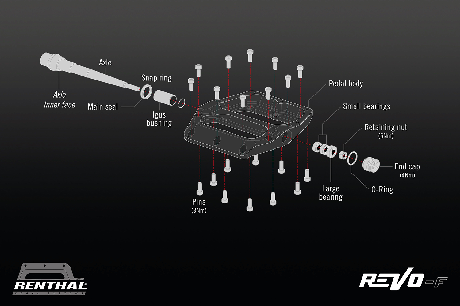 High grade chromoly axleFully concave platform in two axisLarge parallelogram body profileTuneable pin height in 1 mm increments from 2.5 mm to 5.5 mmFull contact, low friction, inboard main sealExtra wide, inboard Igus bushingThree outboard cartridge bearingsSimple, servicing axle system