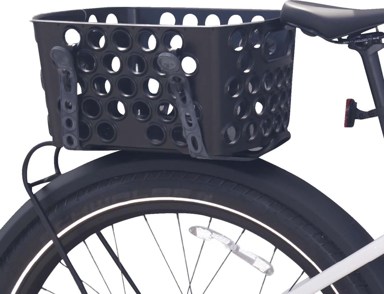 Great for when you're heading back from the grocery store with some essentials or need some extra carrying space for cruising around townAn especially great ebike basket as many manufacturers have irregular and wider racksMounts quickly and easily to any rear rackIncludes two durable mounting rubber straps for easy on, easy offMade using durable molded plastic