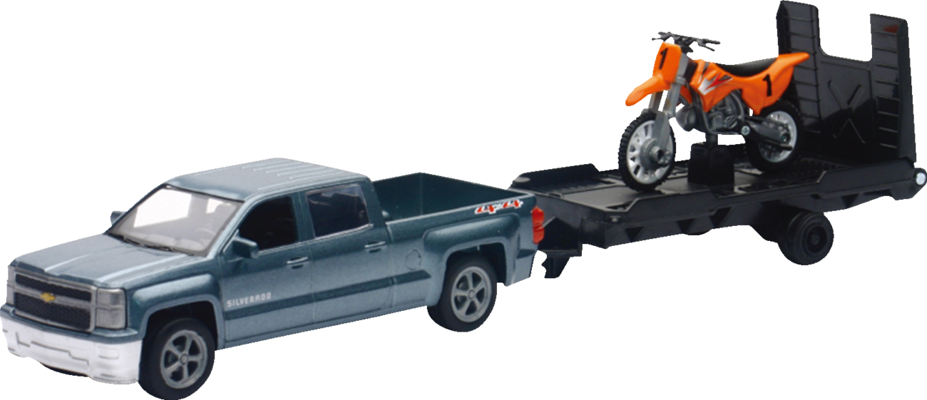Mini Chevrolet Silverado comes with a mini dirt bike on a trailer1:32 scale figure