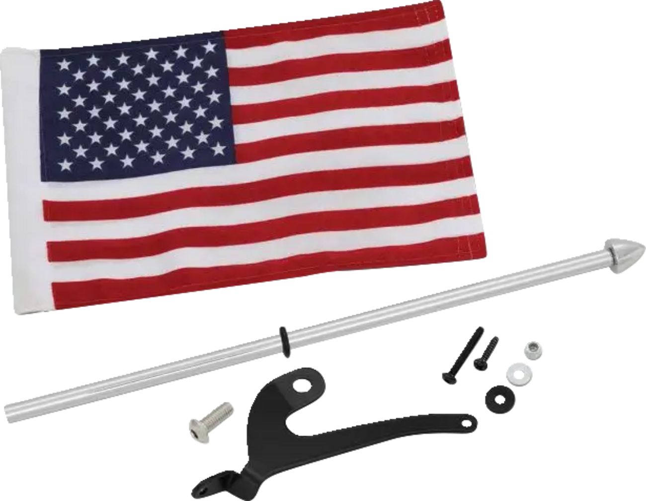 Conveniently folds forward allowing them to tuck out of the way for easy cover placement Comes in either a right or left mount, so you can choose the perfect side or get them bothA longer screw and nut is included to bolt through the inner trunk shell for a secure fit10 cant allows a slight rear angle and mounts to two existing fairing hole mountsComes with 6" x 9" US flag and all required hardwareFlag pole supports flags upto 8-3/4" tall and comes with satin black mountsSpecs