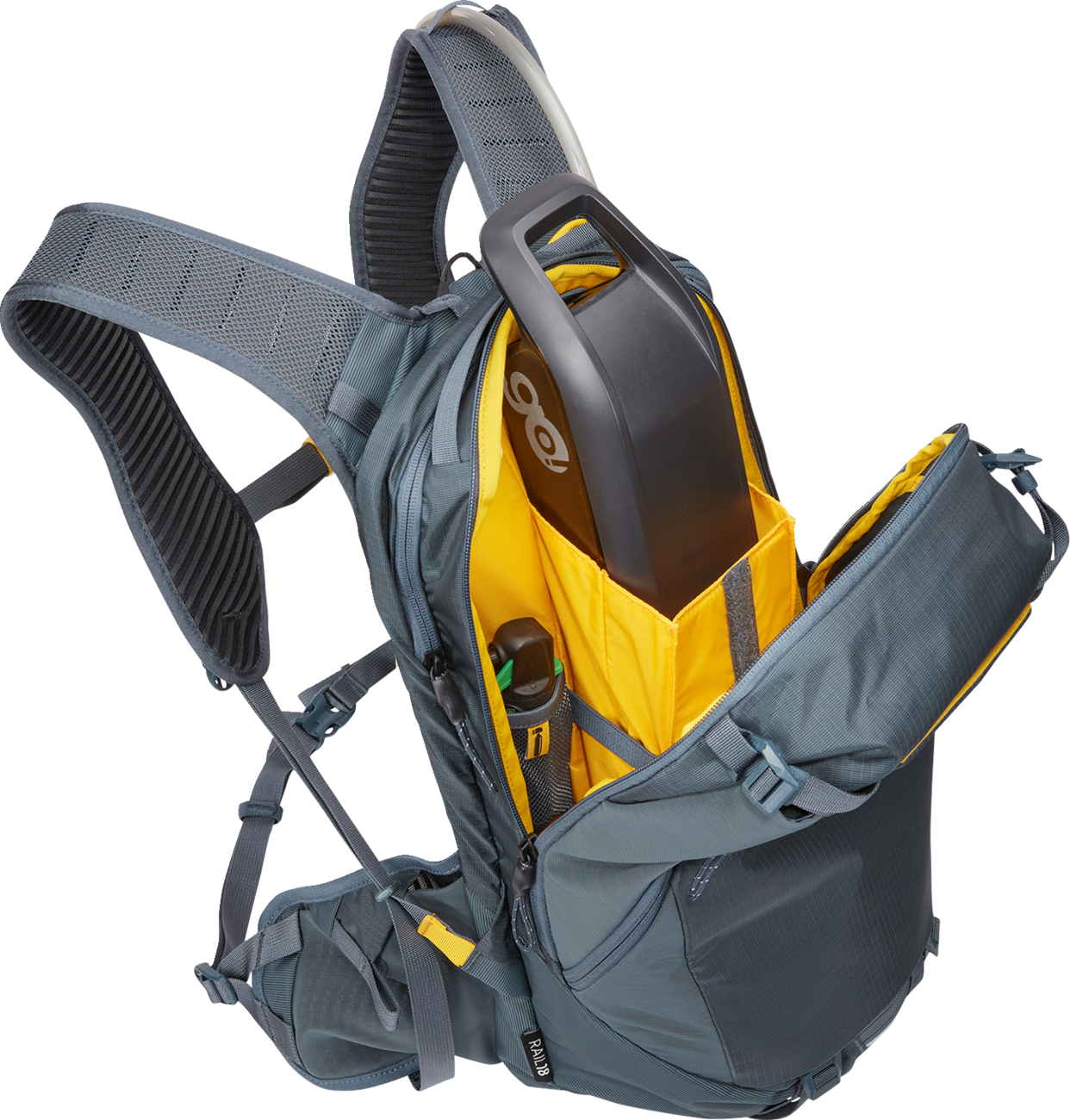 • 2.5 L HydraPak reservoir features a slide closure for easy cleaning and a locking bite valve to prevent leaks before and after your ride