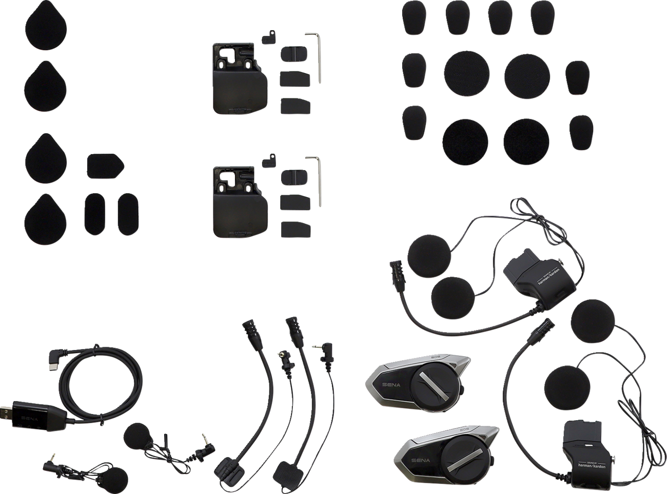 Features Bluetooth® 5.0 technology and Mesh 2.0Features a versatile Jog Dial for effortless operationHARMAN-KARDON version of the 50S HD speakers are slimmer and trimmed around the edges for a comfortable fit with a helmet on; audio output delivers crystal-clear sound qualityFeatures multi-language support and direct digital assistance; can be used with Google Assistant and Siri through voice commandsTalk time of 9 hours with Mesh intercom or 14 hours with Bluetooth intercom when fully chargedCharging time of 1 hour or a quick 20 minutes for 3.5 hours of Mesh communication or 6 hours of Bluetooth intercomConnects to Sena’s 50 Utility App for customization of a variety of settings