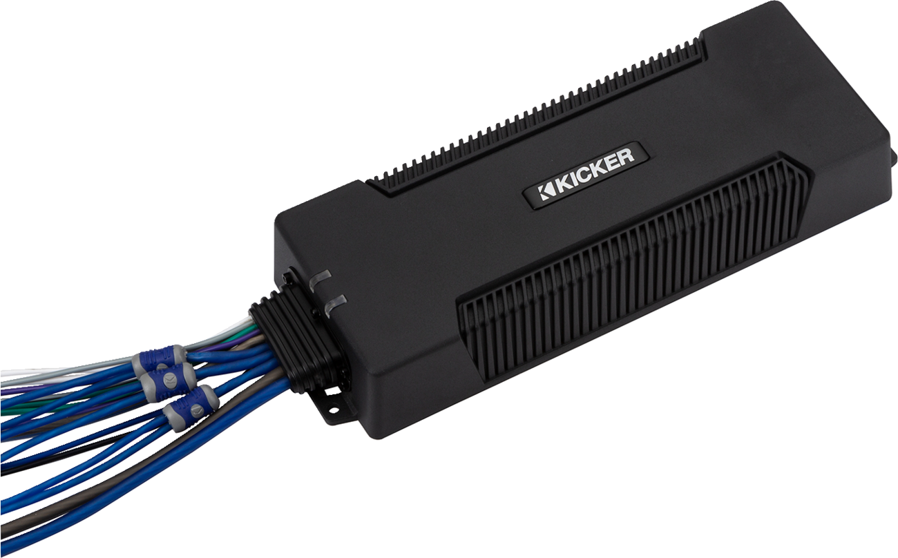 Waterproof amplifier design with IP66 and IP67 certifications5-channel amplifier, 4 x 100 W full range with 600 W sub channelHigh-efficiency Class-D technologyHuge full-range power from a small footprint – rated at 1400 watts Dynamic PowerIncludes inline power and ground couplers that need no soldering or crimpingDual turn-on modes (choice of DC offset or 12 V trigger)Stainless-steel mounting hardware included