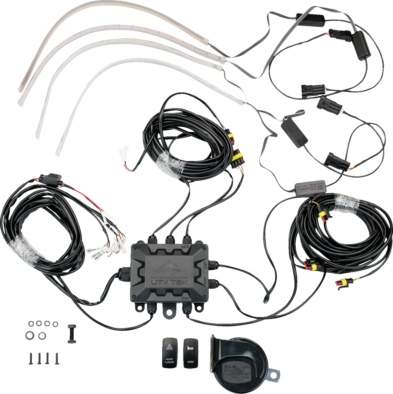 Pre-wired electrical command center with waterproof connectionsTurn signal, hazard & horn rocker switches LED cut-to-size eyebrow blinker/running lightsAll wiring included and connectedEasy install with little to no drilling