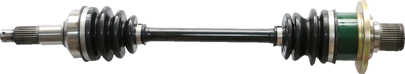 Precision machined and heat treated solid chromoly steel center shaft, cages, races and ball bearings up to 35% strongerHighest quality, most reliable, and toughest constant velocity axles on the marketManufactured in a state-of-the-art ISO9001 and TS16949 certified factoryInduction heat treated joints packed with high performance moly greaseDesigned to withstand the most rigorous conditions and terrainHigh-strength spring steel retaining clips (where required)Torture tested to failure to ensure maximum durabilityExceed OEM quality in fit, form and functionSecure stainless steel dust boot clampsFully assembled for easy installationPrecision rolled splines and threadsSpecs