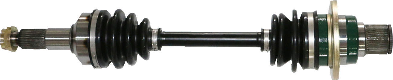 Precision machined and heat treated solid chromoly steel center shaft, cages, races and ball bearings up to 35% strongerHighest quality, most reliable, and toughest constant velocity axles on the marketManufactured in a state-of-the-art ISO9001 and TS16949 certified factoryInduction heat treated joints packed with high performance moly greaseDesigned to withstand the most rigorous conditions and terrainHigh-strength spring steel retaining clips (where required)Torture tested to failure to ensure maximum durabilityExceed OEM quality in fit, form and functionSecure stainless steel dust boot clampsFully assembled for easy installationPrecision rolled splines and threadsSpecs