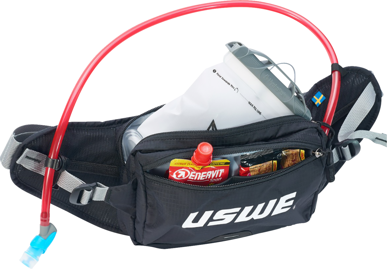 Super lightweight hydration hip-pack for mountain biking and offroad motorcyclingZULO 2 is a special designed race hydration waist pack providing the perfect ergonomic fitWith its banana-shape and single-buckle secure suspension strap, the belt will be fixed on your waist without cramping your style and performanceEquipped with a 1.0L/35oz Elite bladder with Plug-N-Play coupling, magnetic clip for the drink tube, smart multi organizer pocket and two quick stash side pockets for quick access to energy gels and foodSingle-buckle secure suspension strapVentilated back panel with better airflowCargo compression keeps your gear close to your body for better balance and increased pack stabilityHelmet handsfree compatibleNDM 1.0 harness systemReduces bounce