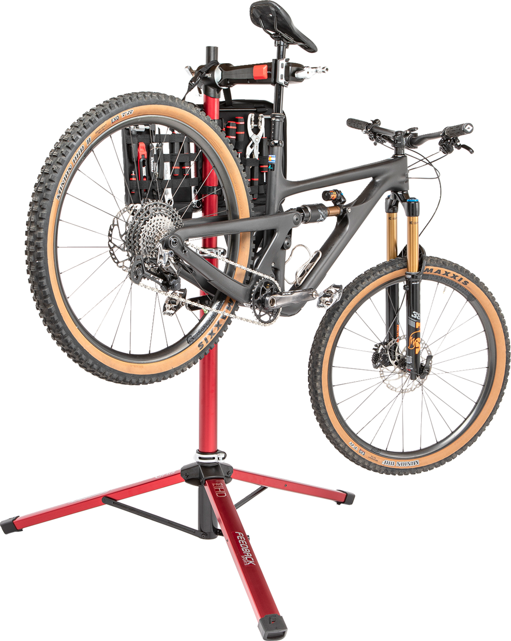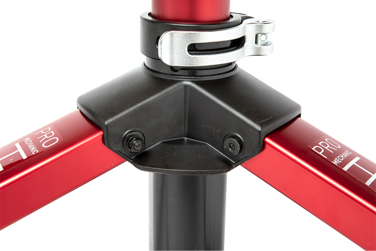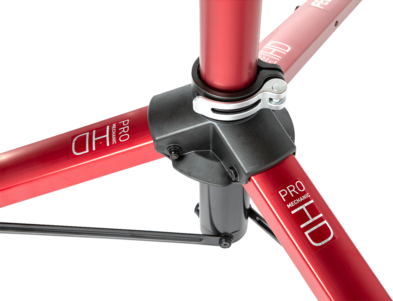 Oversized, anodized 6061 T6 aluminum construction is ultralight, corrosion-resistant and durableIdeally suited for heavier bicycles: 145% stiffer than Pro EliteStiff tripod base and rubber-coated end caps create ultimate stability even on uneven surfacesTotal load capacity of 120 lbs (39 kg) accommodates service on all road, cyclocross, mountain bikes, and electric bikesOversized knob to fix the position of a 360-degree rotating clamp, providing easy access to all parts of your bicycleStrong clutch design holds bike at any angle for repairsRatcheting and rotating crank for jaw closure is faster and one-hand operableClamp opening up to 2.6" (6.6 cm) accommodates the largest diameter frame tubesReplaceable rubber pads on forged clamp and micro-adjustment secures and protects expensive components and painted framesPortable and compact construction creates a remarkably small folded footprint of 5" x 8" x 45" (13 x 20 x 115 cm)Quick-release fittings make setup and storage fast and easy