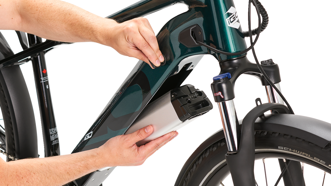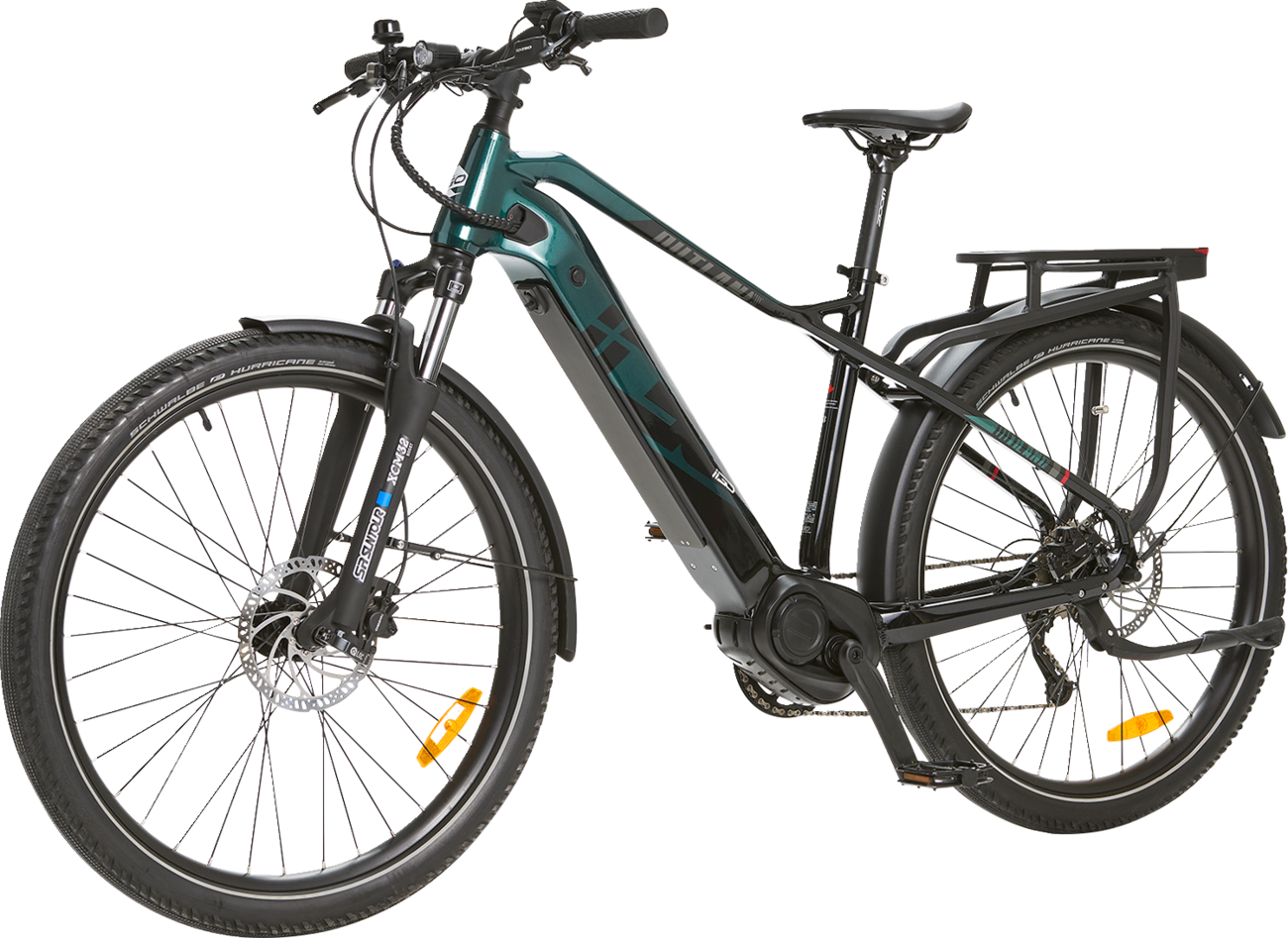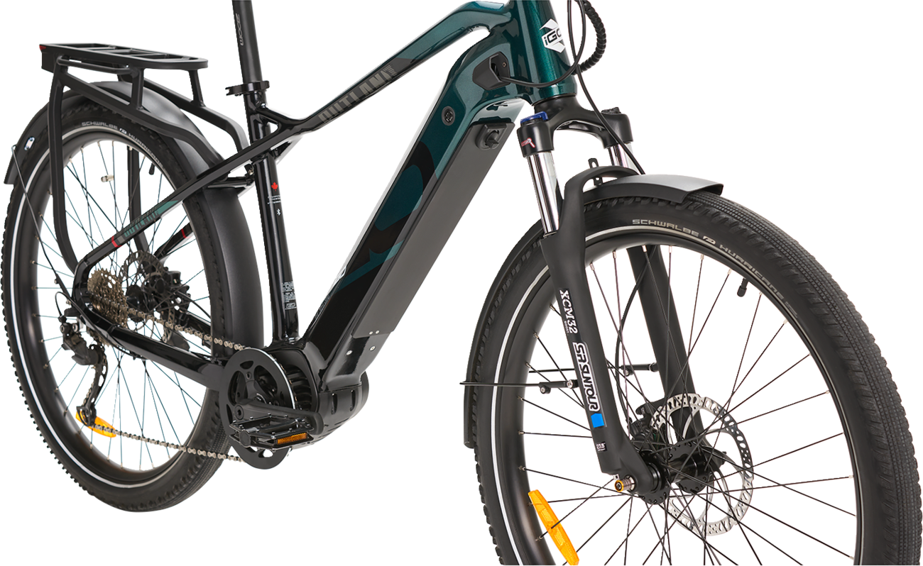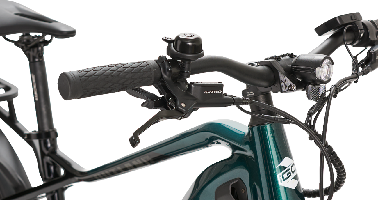 Programmed to be 'multi class switchable', this #1 feature allows parameters to be instantly reconfigured at the touch of a button to conform to Class 1, 2, or 3 regulationsActive all-road trekking bike with powerful sporty demeanor and dynamic motor system delivering all the advantages of electric assist while maintaining a traditional riding experienceBuilt for adventure with increased suspension, quick rolling center/high traction edge tires, heavy duty rear rack (with plenty of capacity for mounting tour bags)All-road tuned 110 Nm/500 W mid motor with Torque/Cadence sensing and throttle delivers a powerful and intuitive natural riding experience720 Wh battery providing up to 50 mile* range—ready everyday with plug and play charging and all day rangeEco/Tour/Sport/Turbo/Boost User programmable and seamless intelligent riding experienceFrame — Hydroformed Alloy, 27.5" Trekking frame, internal cable routing head tube ported, removable down tube battery with security lock, accessory ready rear cargo rackFork — Suntour XCM32 HLO DS suspension, 80 mm travel, lockout, Q-LocThru AxleShifters — SHIMANO ALIVIO 9-speed Rapidfire PlusChainrings — 42T with Narrow Wide teethChain — KMC E9-SRear Derailleur — SHIMANO ALIVIO 9-speedCassette — SHIMANO ALIVIO 9-speed 11-34THandlebar — 720 mm, 28 mm rise, 31.8 mm diameterGrips — VELO, Rubber palm rest, 140 mmStem — 45 mm with 3° rise, 31.8 mm clamp diameterSeat Post — 31.6 mm (350 mm)Saddle — SELLE ROYALBrake Levers — TEKTRO HDE350 with power cut off switchBrake Calipers — TEKTRO HDE350 Hydraulic DiscRotors — 180 mmTires — SCHWALBE HURRICANE 27.5” x 2.4”Rims — 27.5”, Dual Wall Alloy, blackBluetooth — iGO Mobile App (Android and iOS). Customizable profile and performance settings with full diagnostic monitoring and alerts.Display Unit — 2” HD High Brightness IPS Color LCD Display, Ergonomically Designed Buttons, IP65 Waterproof, Password Protected Power On Option, USB Charging Port, Light Auto On/Off Option (Ambient Light Detector), Interface Color Coded Display Reference (for Quick Glance Safety), Main Power/PAS Control/Ride, Stats and Settings Toggle, PAS Level/Battery/Power/Clock, Speedometer/Max Speed/Avg Speed, Trip Distance, Battery Voltage/Capacity Percentage/Range/Accumulated Charging Cycles, Motor Power Output Average/Maximum, Ride Analysis Statistics, Diagnostic and Warning Information, Walk AssistMotor — iGO DRIVE RS 500 W mid motor, 48 VTorque — up to 130 NmBattery — 5000mAh SAMSUNG cell, removable with security lock (48 V | 15 Ah | 720 Wh)Range — 60 miles*Pedal Assist System — Eco/Tour/Sport/Turbo/Boost color coded per PAS levelThrottle — On-Demand, RemovableSensor — Internal Torque, Cadence, SpeedClass — Class 2 Model, configurable to Class 1 or Class 3 capable where permitted**Front LED light XC-259A (powered by main battery), Rear LED SPANNINGA LED Commuter Glow XE with brake light Integrated into rear rack (powered by main battery), Front & Rear Fenders, Rear Cargo Rack Accessory ready, Integrated Chainring Guard, Water Bottle Bosses on Seat Tube, Kickstand, Alloy MTB Pedals, Bell, Tool Kit, Battery ChargerBattery Weight — 7.7 lbWeight Capacity — 275 lb
