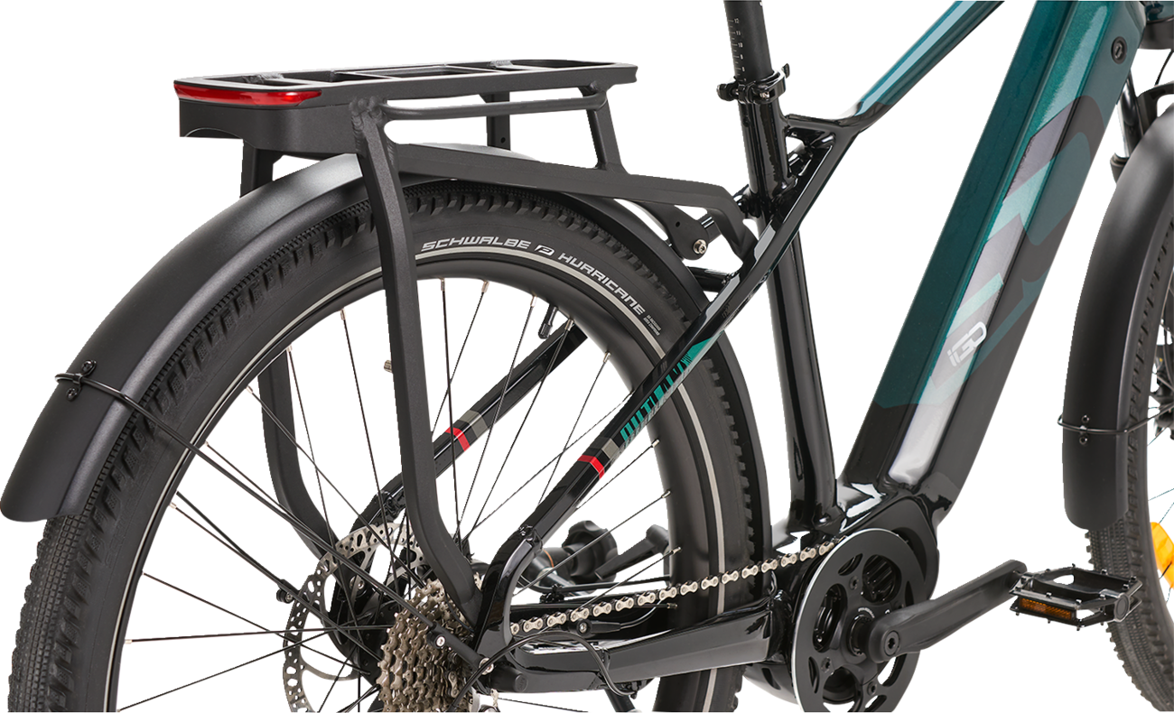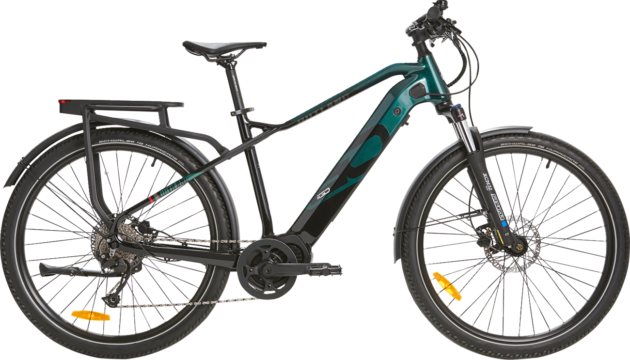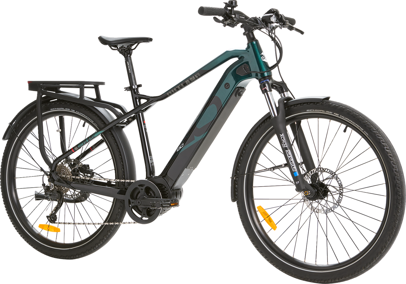 Programmed to be 'multi class switchable', this #1 feature allows parameters to be instantly reconfigured at the touch of a button to conform to Class 1, 2, or 3 regulationsActive all-road trekking bike with powerful sporty demeanor and dynamic motor system delivering all the advantages of electric assist while maintaining a traditional riding experienceBuilt for adventure with increased suspension, quick rolling center/high traction edge tires, heavy duty rear rack (with plenty of capacity for mounting tour bags)All-road tuned 110 Nm/500 W mid motor with Torque/Cadence sensing and throttle delivers a powerful and intuitive natural riding experience720 Wh battery providing up to 50 mile* range—ready everyday with plug and play charging and all day rangeEco/Tour/Sport/Turbo/Boost User programmable and seamless intelligent riding experienceFrame — Hydroformed Alloy, 27.5" Trekking frame, internal cable routing head tube ported, removable down tube battery with security lock, accessory ready rear cargo rackFork — Suntour XCM32 HLO DS suspension, 80 mm travel, lockout, Q-LocThru AxleShifters — SHIMANO ALIVIO 9-speed Rapidfire PlusChainrings — 42T with Narrow Wide teethChain — KMC E9-SRear Derailleur — SHIMANO ALIVIO 9-speedCassette — SHIMANO ALIVIO 9-speed 11-34THandlebar — 720 mm, 28 mm rise, 31.8 mm diameterGrips — VELO, Rubber palm rest, 140 mmStem — 45 mm with 3° rise, 31.8 mm clamp diameterSeat Post — 31.6 mm (350 mm)Saddle — SELLE ROYALBrake Levers — TEKTRO HDE350 with power cut off switchBrake Calipers — TEKTRO HDE350 Hydraulic DiscRotors — 180 mmTires — SCHWALBE HURRICANE 27.5” x 2.4”Rims — 27.5”, Dual Wall Alloy, blackBluetooth — iGO Mobile App (Android and iOS). Customizable profile and performance settings with full diagnostic monitoring and alerts.Display Unit — 2” HD High Brightness IPS Color LCD Display, Ergonomically Designed Buttons, IP65 Waterproof, Password Protected Power On Option, USB Charging Port, Light Auto On/Off Option (Ambient Light Detector), Interface Color Coded Display Reference (for Quick Glance Safety), Main Power/PAS Control/Ride, Stats and Settings Toggle, PAS Level/Battery/Power/Clock, Speedometer/Max Speed/Avg Speed, Trip Distance, Battery Voltage/Capacity Percentage/Range/Accumulated Charging Cycles, Motor Power Output Average/Maximum, Ride Analysis Statistics, Diagnostic and Warning Information, Walk AssistMotor — iGO DRIVE RS 500 W mid motor, 48 VTorque — up to 130 NmBattery — 5000mAh SAMSUNG cell, removable with security lock (48 V | 15 Ah | 720 Wh)Range — 60 miles*Pedal Assist System — Eco/Tour/Sport/Turbo/Boost color coded per PAS levelThrottle — On-Demand, RemovableSensor — Internal Torque, Cadence, SpeedClass — Class 2 Model, configurable to Class 1 or Class 3 capable where permitted**Front LED light XC-259A (powered by main battery), Rear LED SPANNINGA LED Commuter Glow XE with brake light Integrated into rear rack (powered by main battery), Front & Rear Fenders, Rear Cargo Rack Accessory ready, Integrated Chainring Guard, Water Bottle Bosses on Seat Tube, Kickstand, Alloy MTB Pedals, Bell, Tool Kit, Battery ChargerBattery Weight — 7.7 lbWeight Capacity — 275 lb