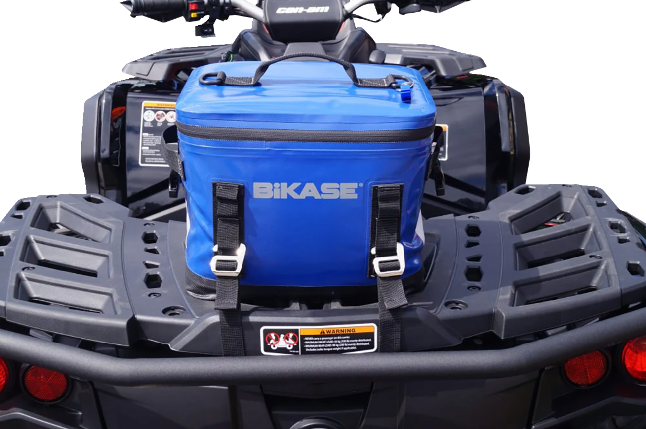 A soft cooler that that is mountable to the front or rear rack of a bicycle, ATVs, scooters, kayaks, and other forms of transportationThis portable cooler is a great way to store drinks and food for a picnic, a day of fun in the sun, or when you go campingPuncture resistant outer shell (made with reinforced scrim material)Overall construction is RF welded to make it extra durable and watertight when uprightHolds up to one pack of 12-ounce (EU: 354,88 ml) cans or twelve 16-ounce (EU: 473,18 ml) bottles and up to 5 lb (EU: 2,27 kg) of iceReflective accents for safety when traveling at nightWaterproof linerMulti-use straps and hooksIncludes a very useful bottle openerEasy to clean, light to carry, simple to storeInside dimensions approximately 8" x 11" x 9" (EU: 20,32 cm x 27,94 cm x 22,86 cm)