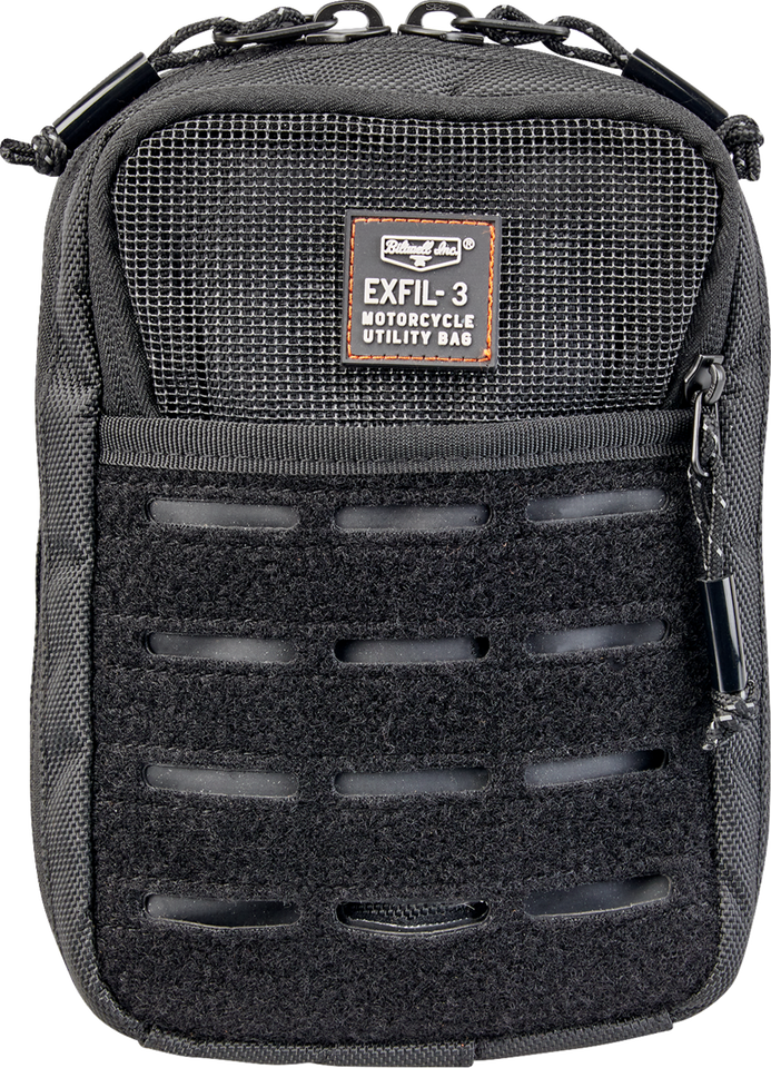 Just the right size with multiple entry points for charging cords, fleece-lined interior pockets, easy-access exterior pockets and lots of MOLLEEXFIL-3 is the perfect motorcycle glove box for all your essential daily carry needsPractical bag designed to fit on motorcycles with tall risers or T-bars but can be attached practically anywhere using the 6 hook-and-loop straps includedUV-Treated 1680 ballistic polyester constructionMultiple, discreet cord pass-throughMesh outer pocket for easy accessHigh-quality zippers and pullsSix hook-and-loop mounting strapsFleece-lined interiorBuilt-in key loop with included carabiner