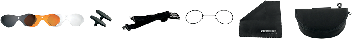 Comfortable sunglasses/goggles with soft foam backingPolycarbonate, shatter-resistant lenses in smoke, amber or clearAnti-fog coating on smoke lensesQuick-adjust lenses for various lighting conditionsStrap and carrying pouch includedRx insert allows use of prescription lenses (not included)