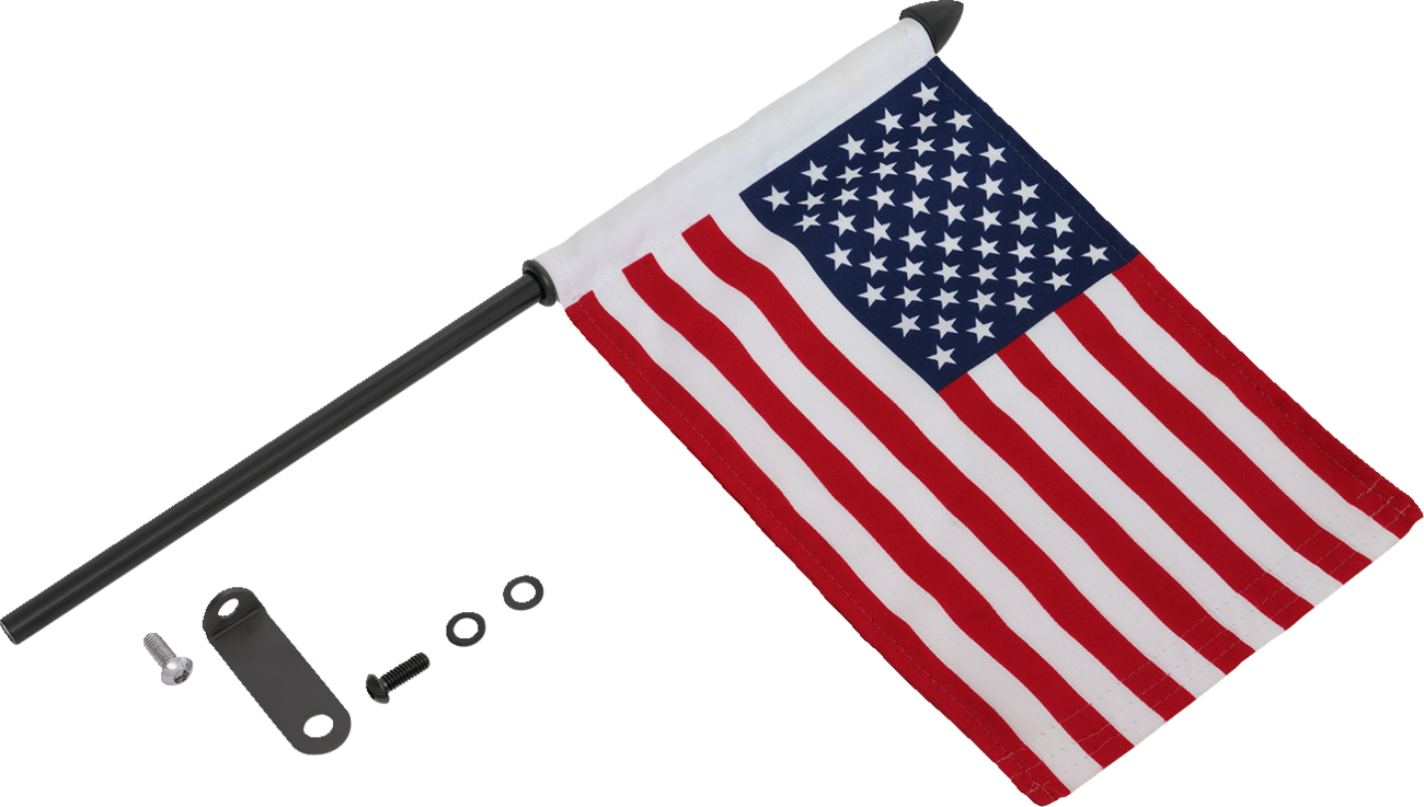 Mounts with 12 x 3/8 flag pole and 6 x 9 flagOffered with steel mounting brackets, aluminum flag pole, and stainless steel hardware for rust preventionAllows riders to display their flags while also folding down for convenient storage when not in useEasy install with no drilling requiredMounts to existing holesSpecs