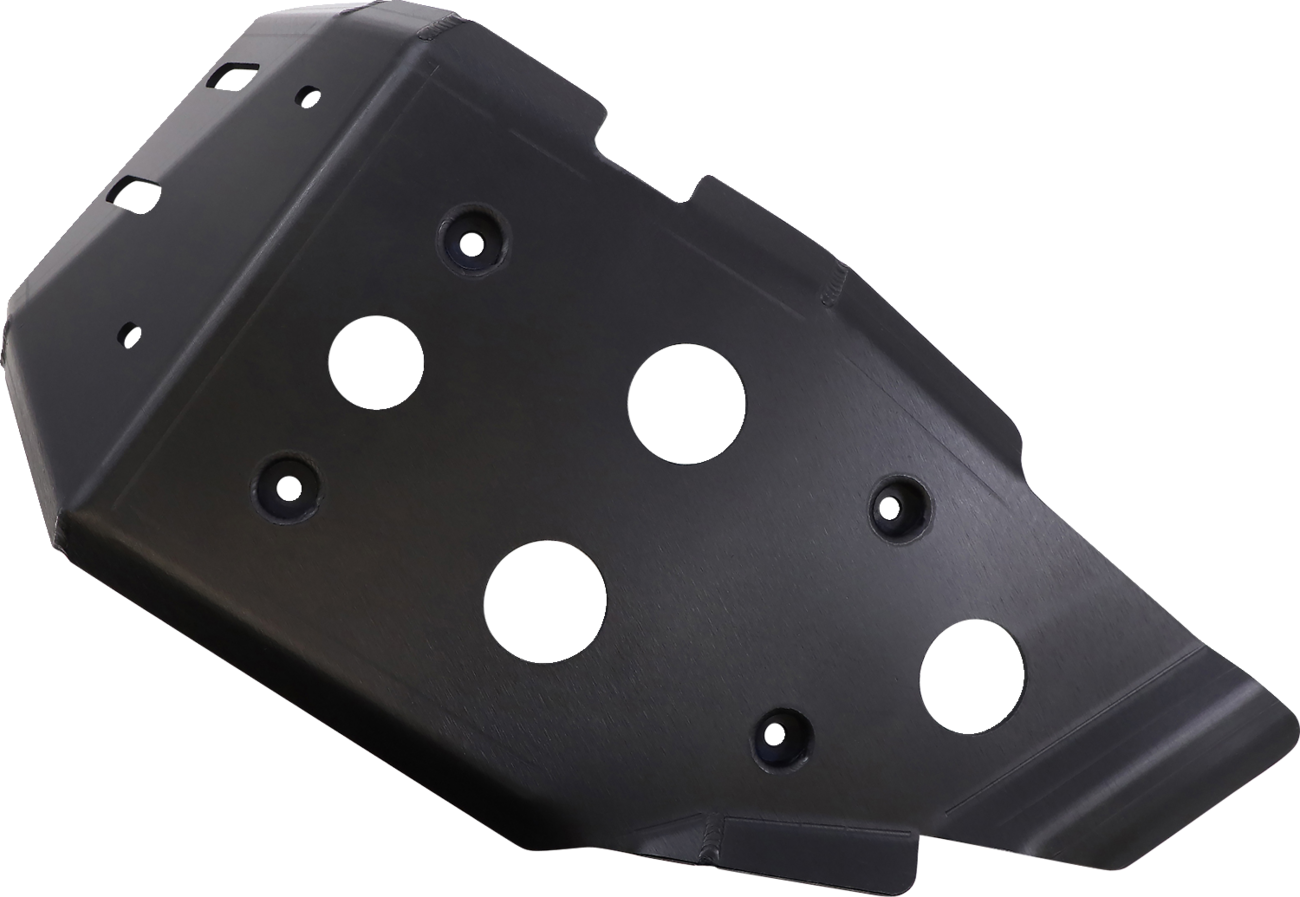 Protect vital engine parts and cases from rocks and debrisClear anodized for corrosion protection and good looksSkid plates made from 3/16" 5052 H-32 aluminumSmooth underside won't snag when crossing logsOil drain hole on all required modelsHeat-treated chromoly steel clamps keep plates mounted securelyAll mounting hardware includedMade in the U.S.A.Specs