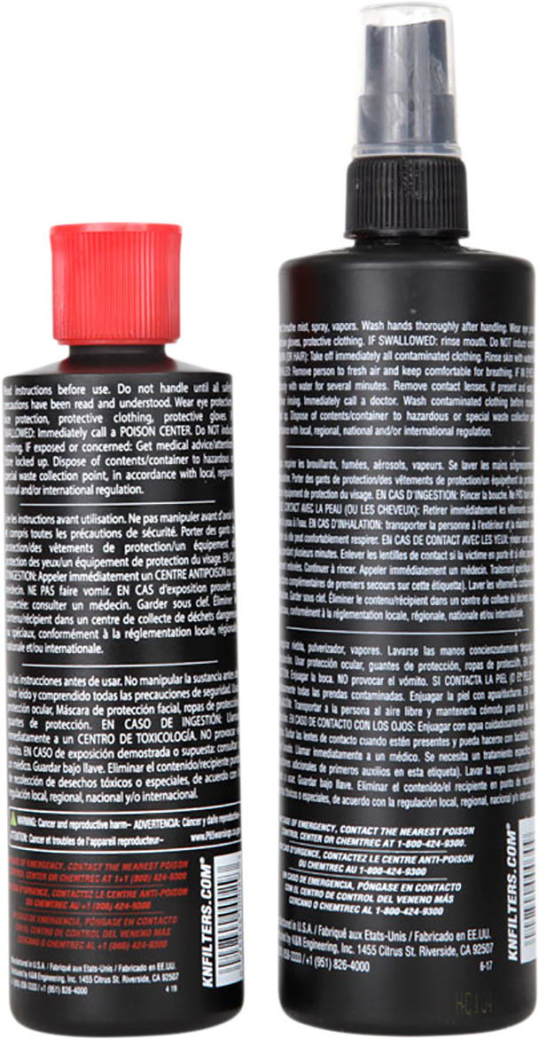 Kit includes: Air Filter Oil (6.5-ounce aerosol can or 8-fluid ounce bottle), a 12-fluid ounce spray bottle of Power Kleen Air Filter Cleaner, and service decal