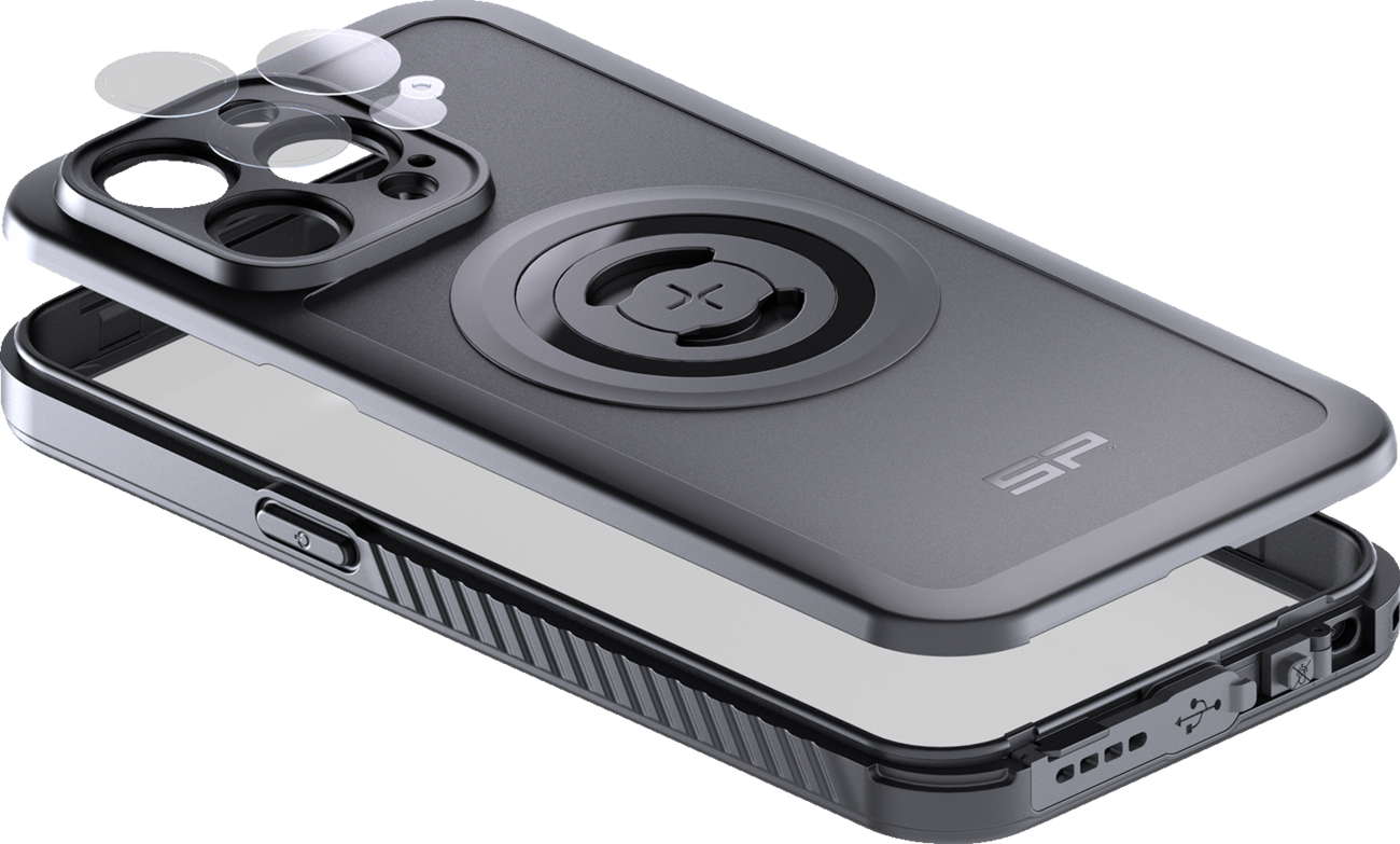 Rugged and waterproof case360° protection for your phone in any terrainIntegrated locking mechanism and magnets for easy attachmentMagsafe®-compatible for quick and convenient charging on the goFull touchscreen usabilityAdditional camera lens protection