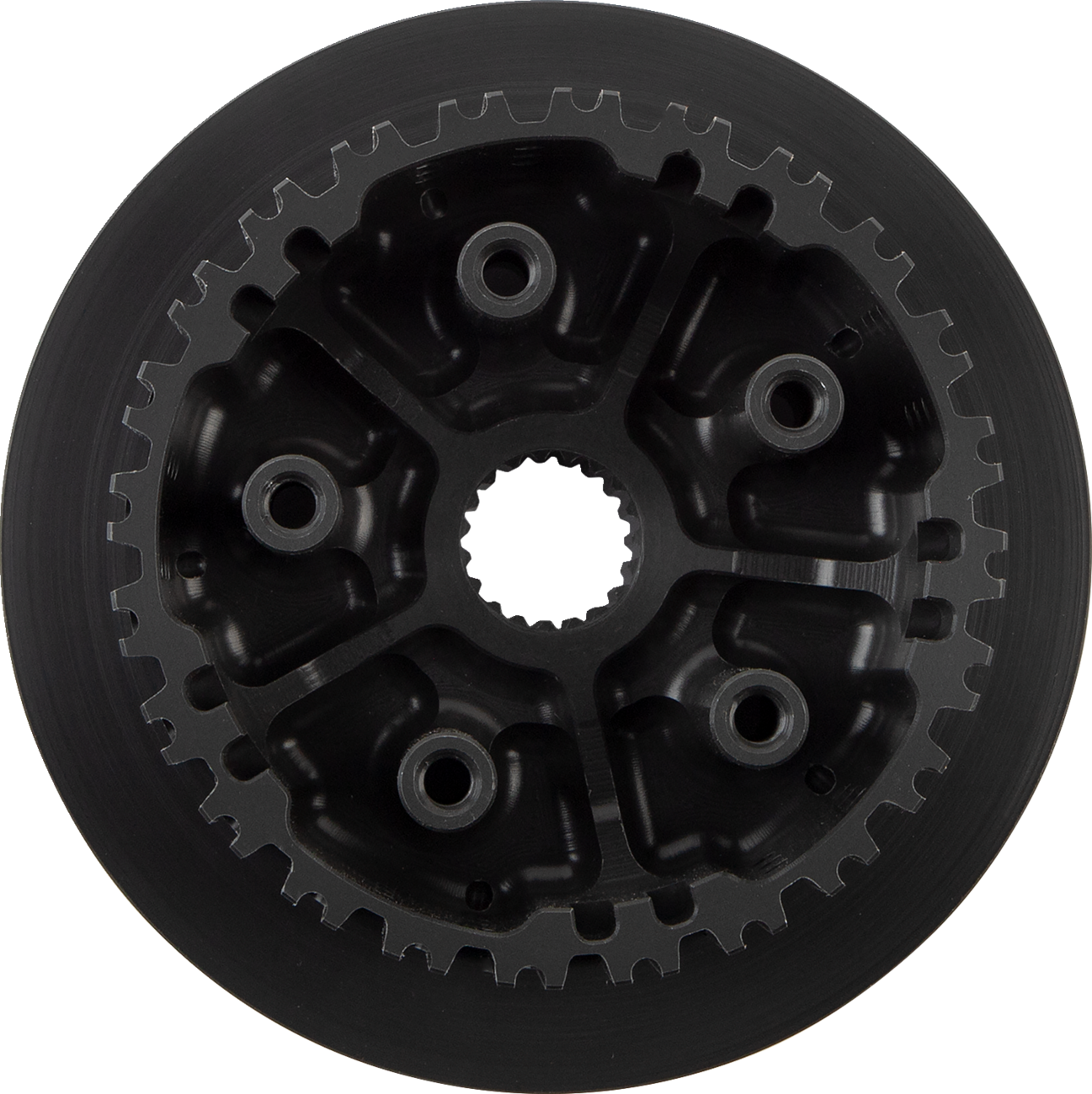 Dissipates heat and improves clutch life and performanceMachined to aerospace tolerances from billet T-6 aircraft-quality aluminumAllows clutch assembly to spin more true, thus creating less heatMade in the U.S.A.Specs