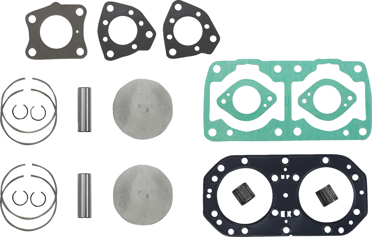 Top-quality piston kitIncludes pistons, rings, pins, clips, racing needle bearings, head and base gaskets, intake and exhaust gasketsSpecs