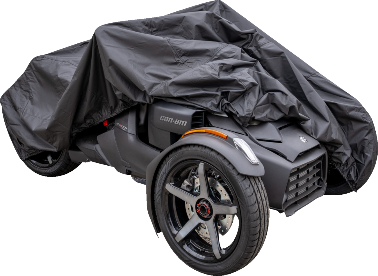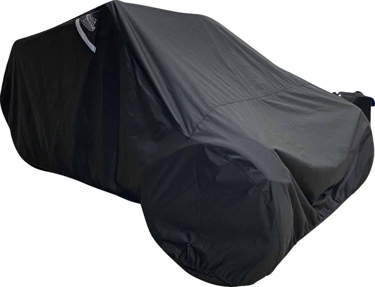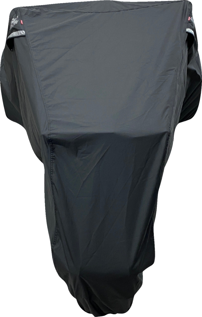 Features heat sealed double taped seams; moisture guard vent system allows moisture to escape; heat shields allow immediate use after riding; interior liner protects windshield; sewn elastic shock cord and under-bike web strap; sewn-in grommets
