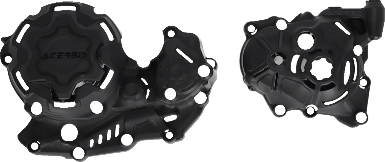Ignition crankcase and clutch crankcase protection kitProtects against wear, impact, abrasion, mud, sand and debrisRight side: clutch crankcase protection, water pump and lower crankcaseLeft side: ignition crankcase protectionResistant to high temperatures, numerous air vents prevent overheatingApplies with the original screws adhering perfectly to the clutch crankcase/ignition crankcaseMounting kit includedCompatible with Acerbis skid platesEngraved logoSpecs