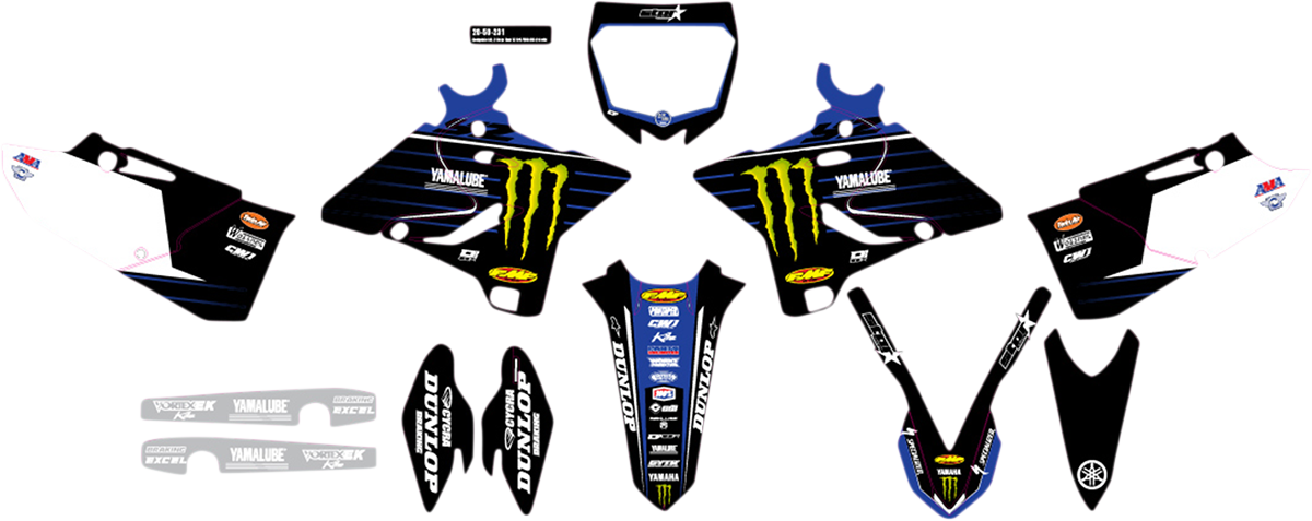 Includes decals for radiator shrouds, tank, number plate, airbox, lower fork guards, front fender, rear fender and swingarmSpecs