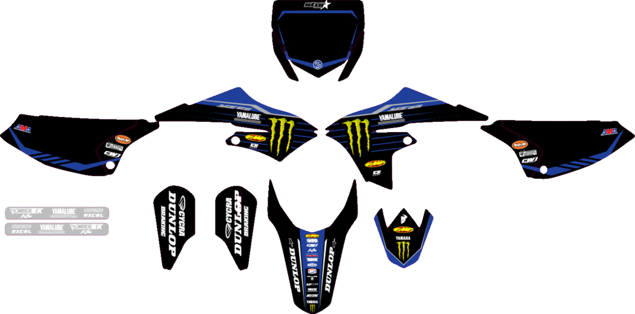 Includes decals for radiator shrouds, tank, number plate, airbox, lower fork guards, front fender, rear fender and swingarmSpecs