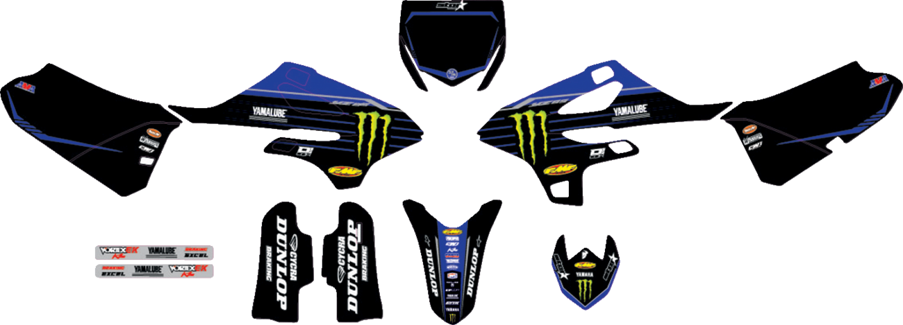 Includes decals for radiator shrouds, tank, number plate, airbox, lower fork guards, front fender, rear fender and swingarmSpecs