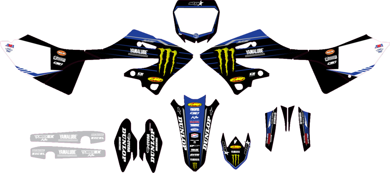 Includes decals for radiator shrouds, tank, number plate, airbox, lower fork guards, front fender, rear fender and swingarmSpecs