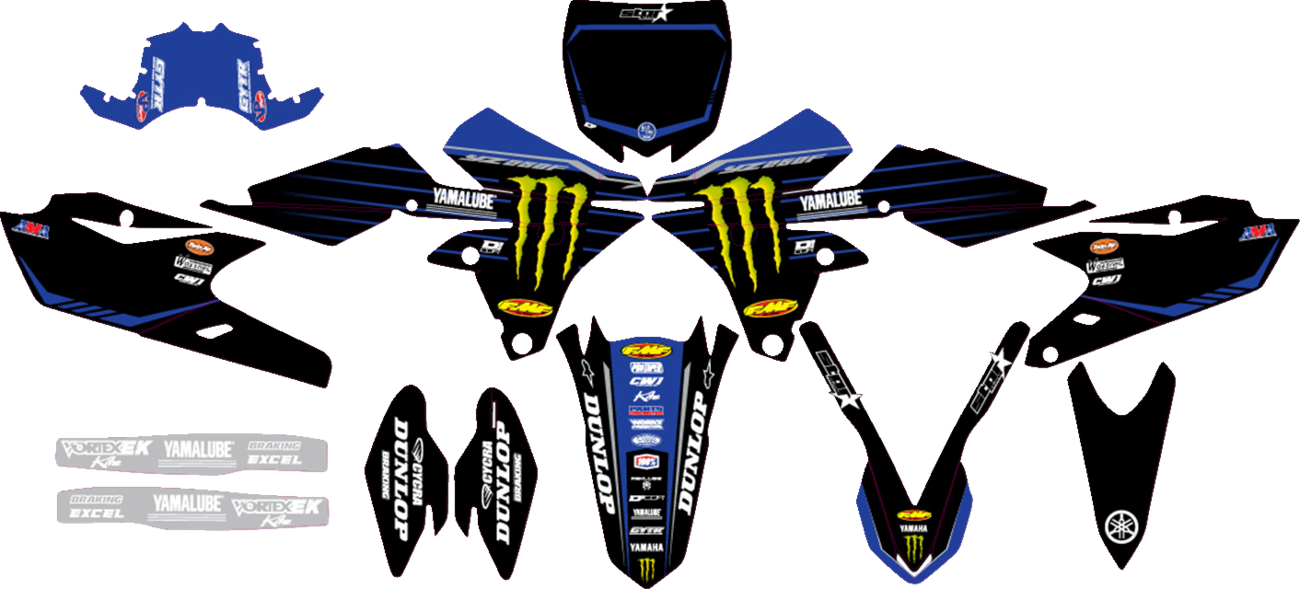 Includes decals for radiator shrouds, tank, number plate, airbox, lower fork guards, front fender, rear fender and swingarmSpecs