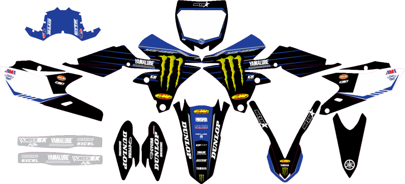 Includes decals for radiator shrouds, tank, number plate, airbox, lower fork guards, front fender, rear fender and swingarmSpecs