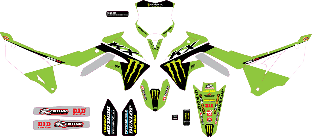Includes decals for radiator shrouds, tank, number plate, airbox, lower fork guards, front fender, rear fender and swingarmSpecs