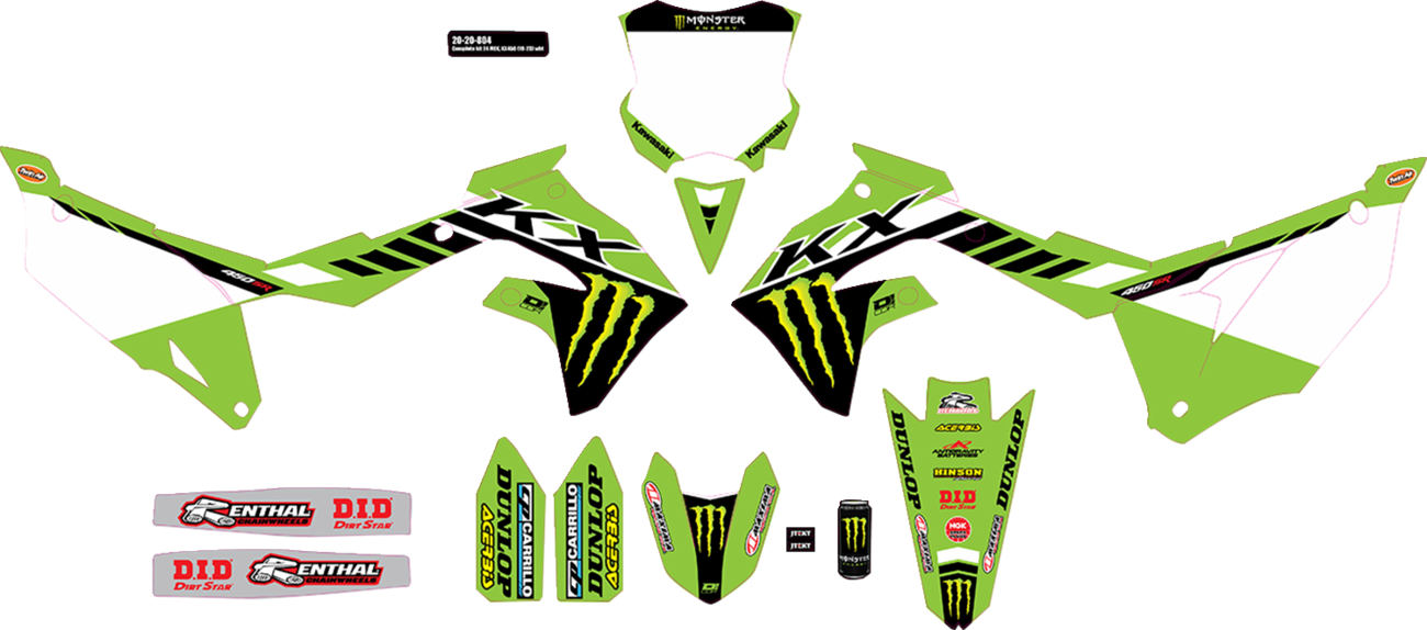 • Includes decals for radiator shrouds, tank, number plate, airbox, lower fork guards, front fender, rear fender and swingarm