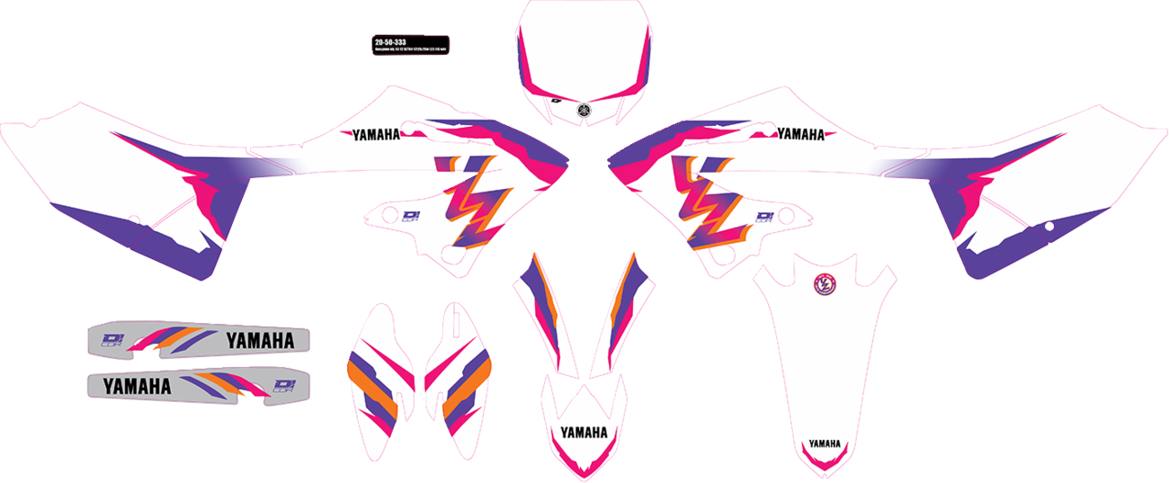 Includes decals for radiator shrouds, tank, number plate, airbox, lower fork guards, front fender, rear fender and swingarmSpecs