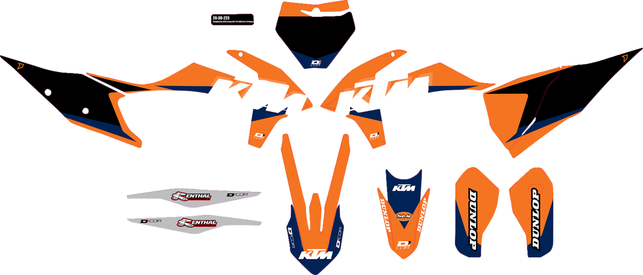 Includes decals for radiator shrouds, tank, number plate, airbox, lower fork guards, front fender, rear fender and swingarmSpecs