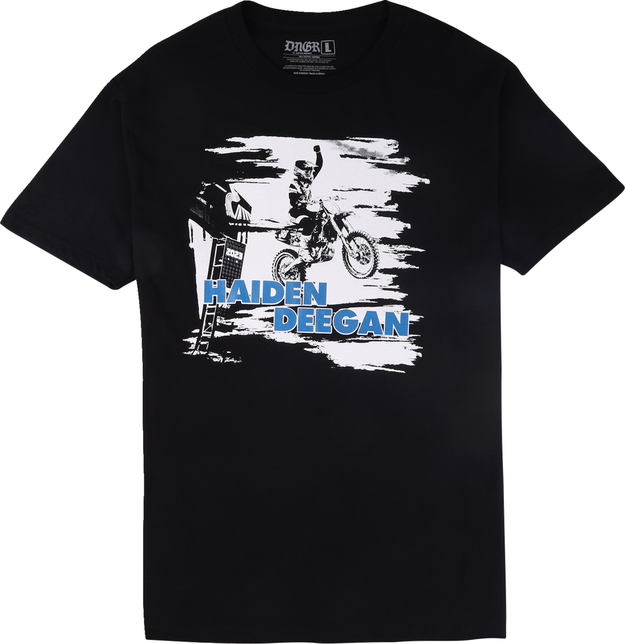 Graphic on t-shirt100% Preshrunk cottonSet-in rib collar with shoulder-to-shoulder tapingSeamless double needle 7/8" collarDouble-needle sleeve and bottom hem